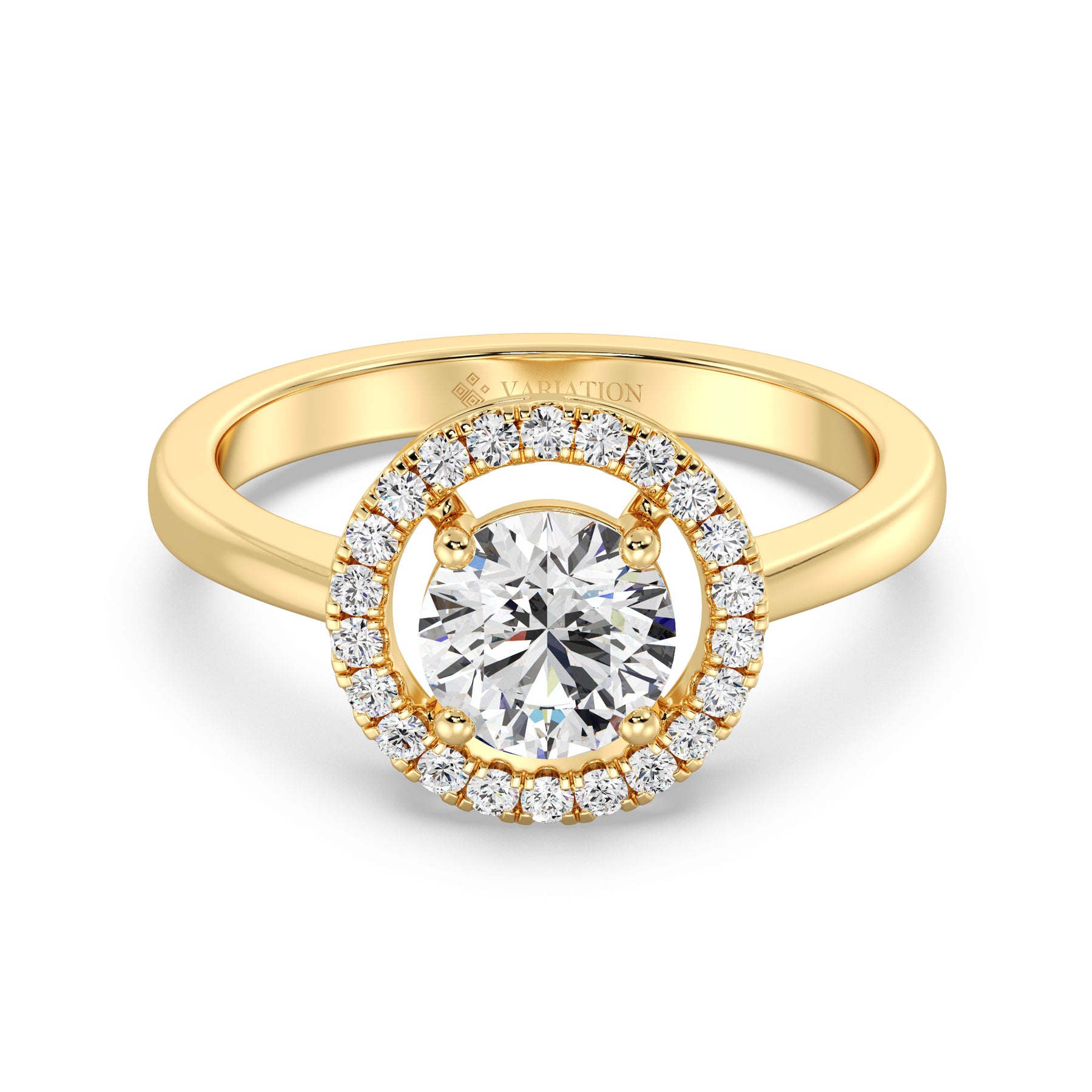 Make a statement with this 1.00ct Round-Cut Lab-Grown Diamond Halo Ring. Featuring a brilliant round center diamond surrounded by a halo of pavé-set accent diamonds (0.20ct), this elegant design enhances sparkle and creates a radiant silhouette. Expertly crafted in 18K yellow, white, or rose gold, it reflects timeless beauty and sophistication from every angle.