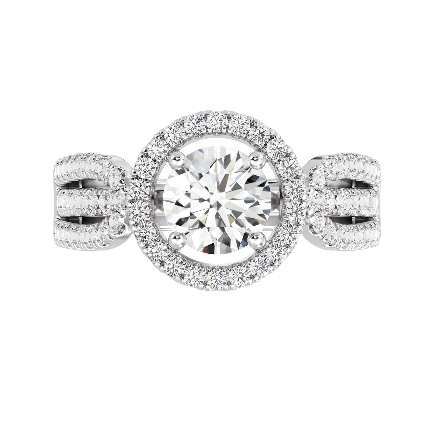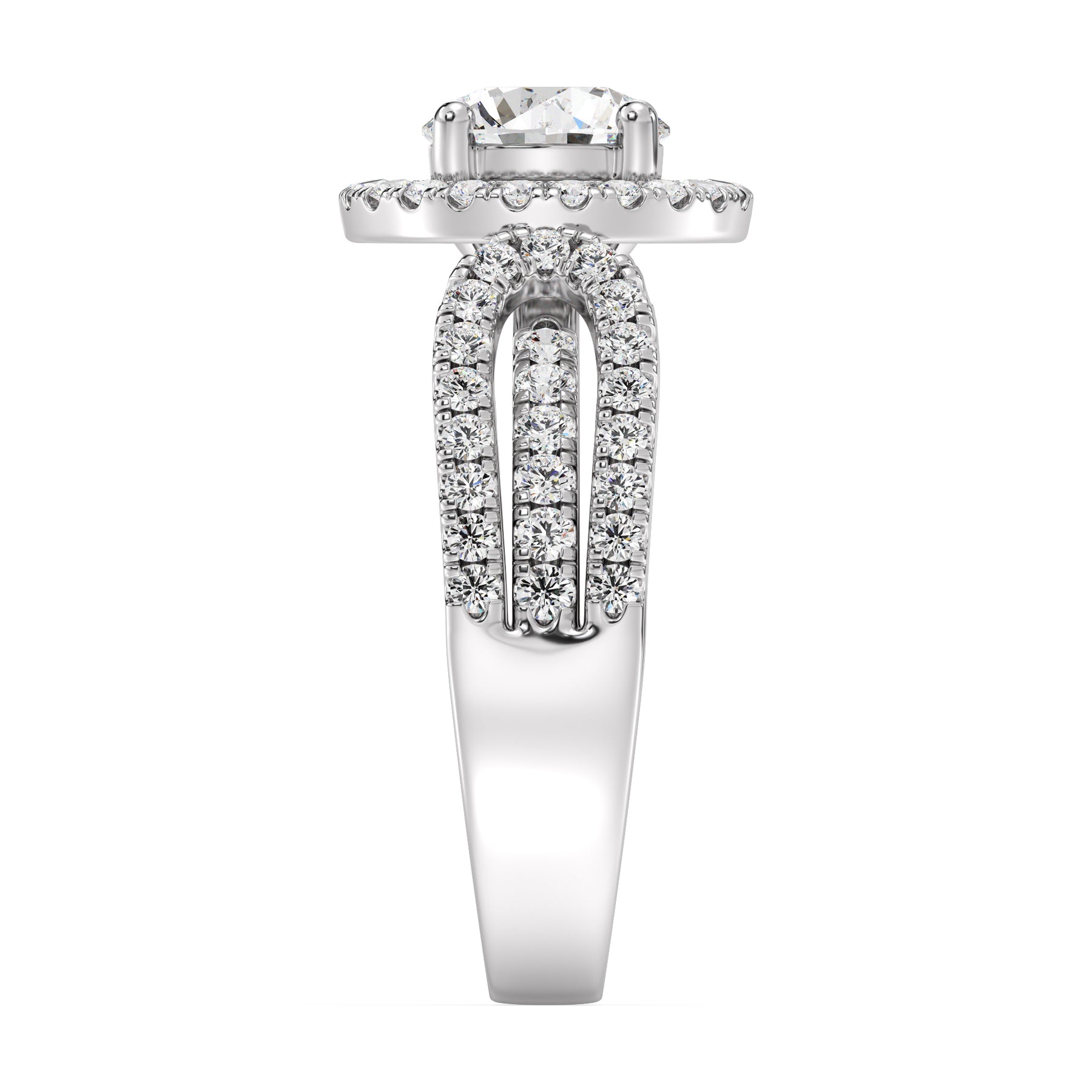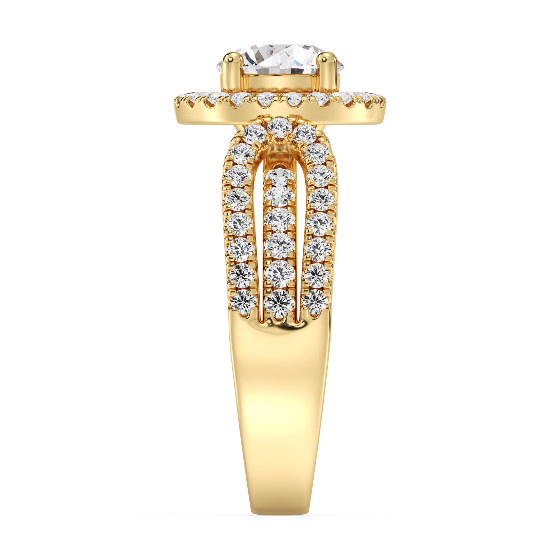 Make a statement with this 1.00ct Round-Cut Lab-Grown Diamond Halo Engagement Ring with Split Shank. Showcasing a stunning 1.00ct IGI-certified round center diamond encircled by a dazzling halo of 68 pavé-set SGL-certified accent diamonds (0.74ct), this design radiates brilliance and depth from every angle. The elegant split shank adds balance and sophistication, creating a refined harmony between modern design and timeless elegance. Expertly crafted in your choice of 18K yellow, white, or rose gold, this ring is a true celebration of love, beauty, and craftsmanship.