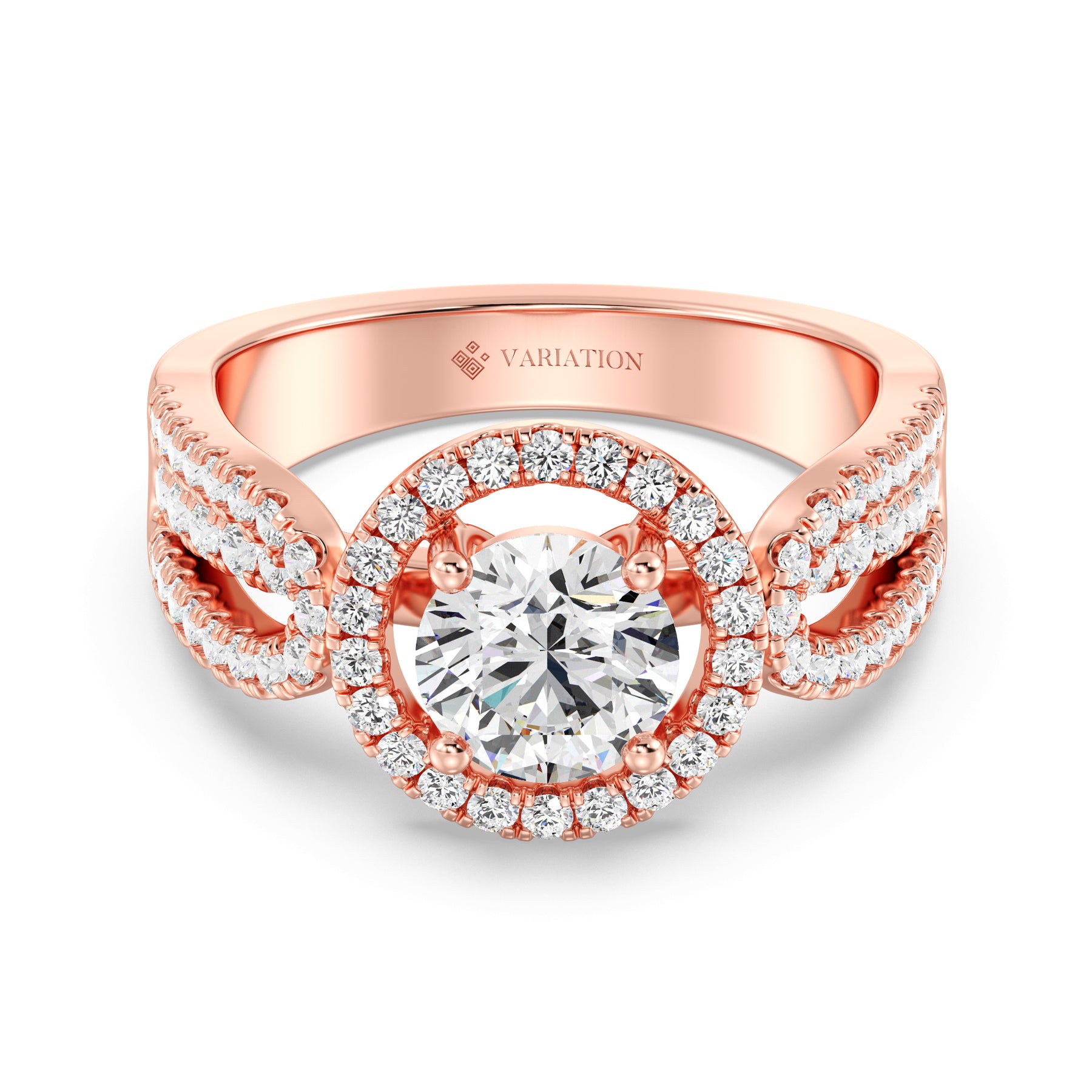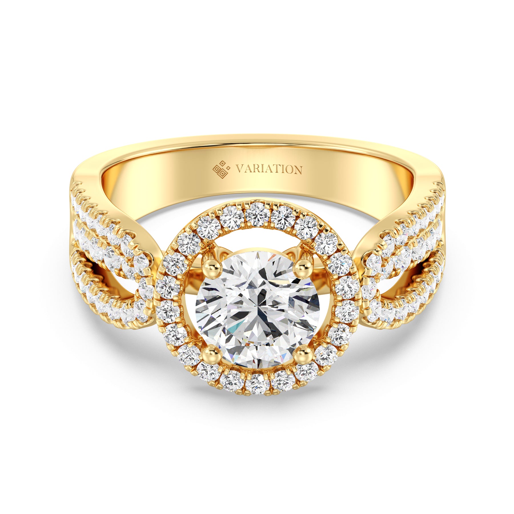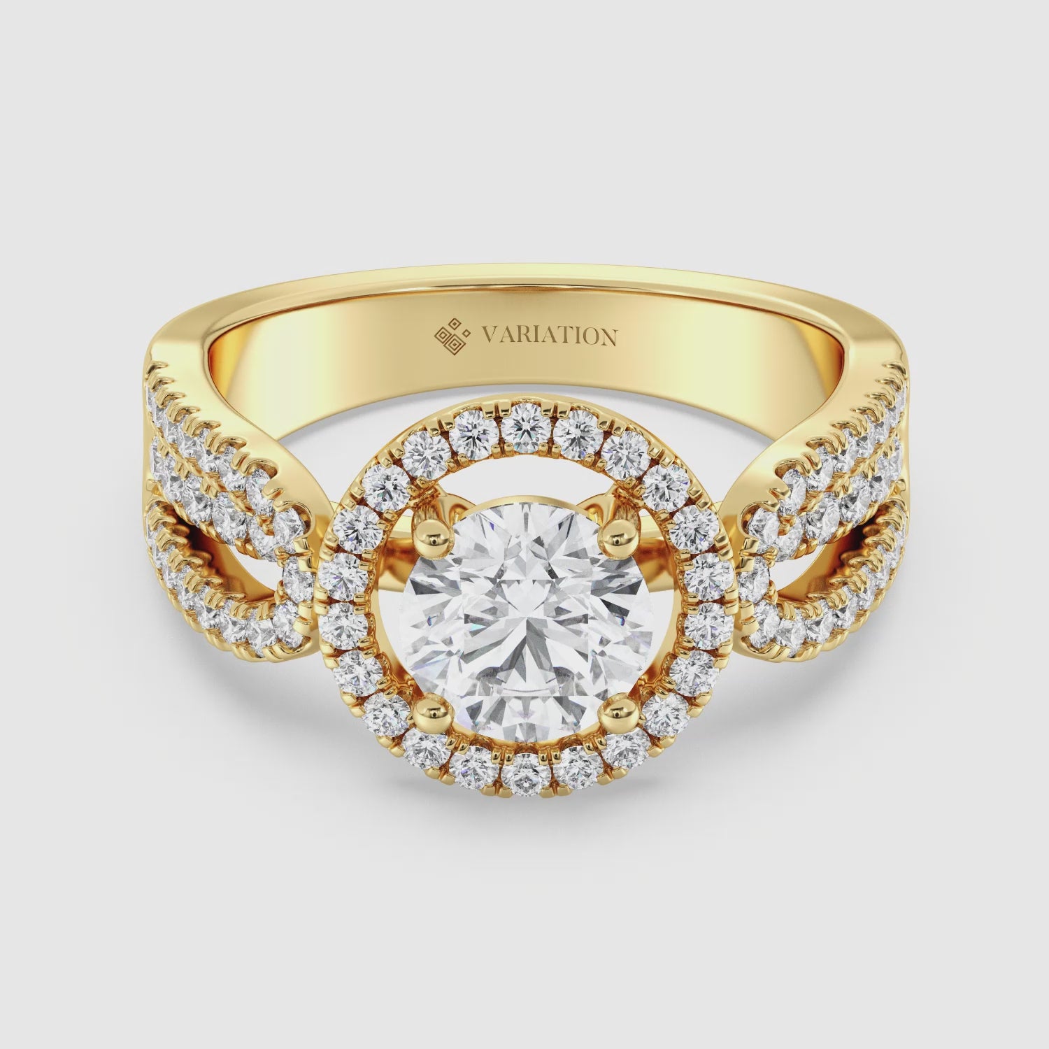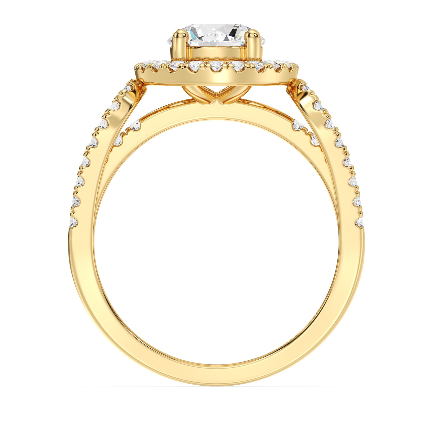 Make a statement with this 1.00ct Round-Cut Lab-Grown Diamond Halo Engagement Ring with Split Shank. Showcasing a stunning 1.00ct IGI-certified round center diamond encircled by a dazzling halo of 68 pavé-set SGL-certified accent diamonds (0.74ct), this design radiates brilliance and depth from every angle. The elegant split shank adds balance and sophistication, creating a refined harmony between modern design and timeless elegance. Expertly crafted in your choice of 18K yellow, white, or rose gold, this ring is a true celebration of love, beauty, and craftsmanship.