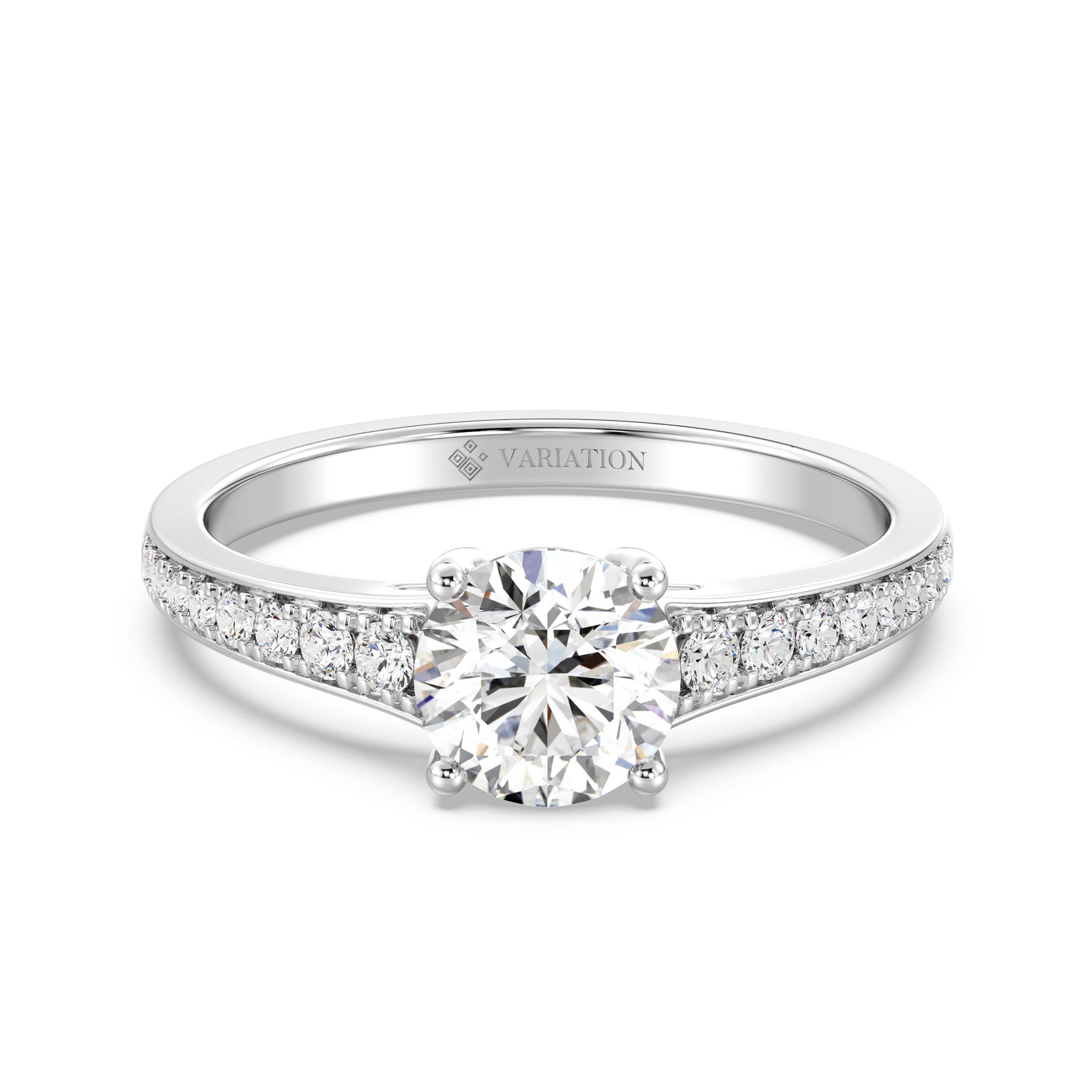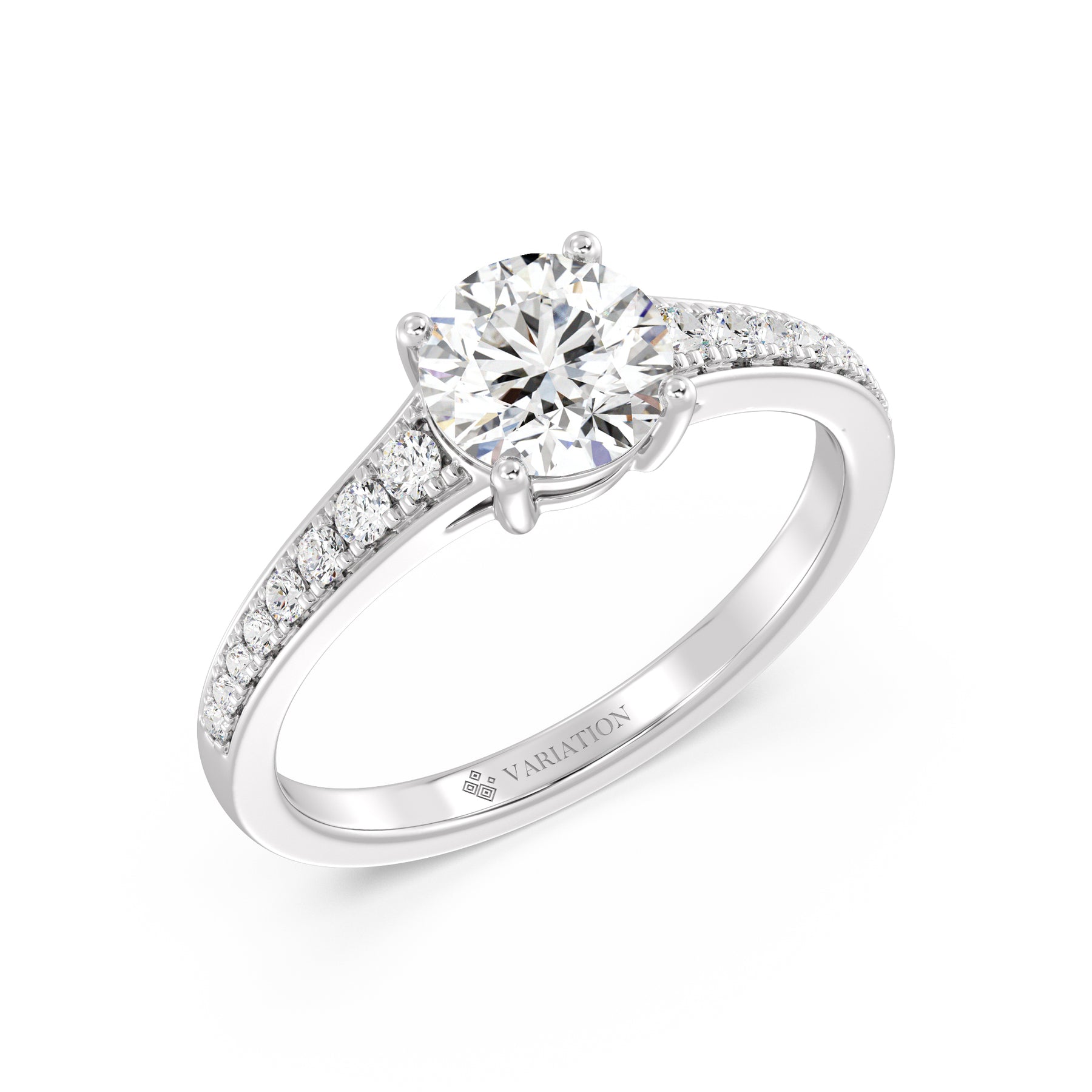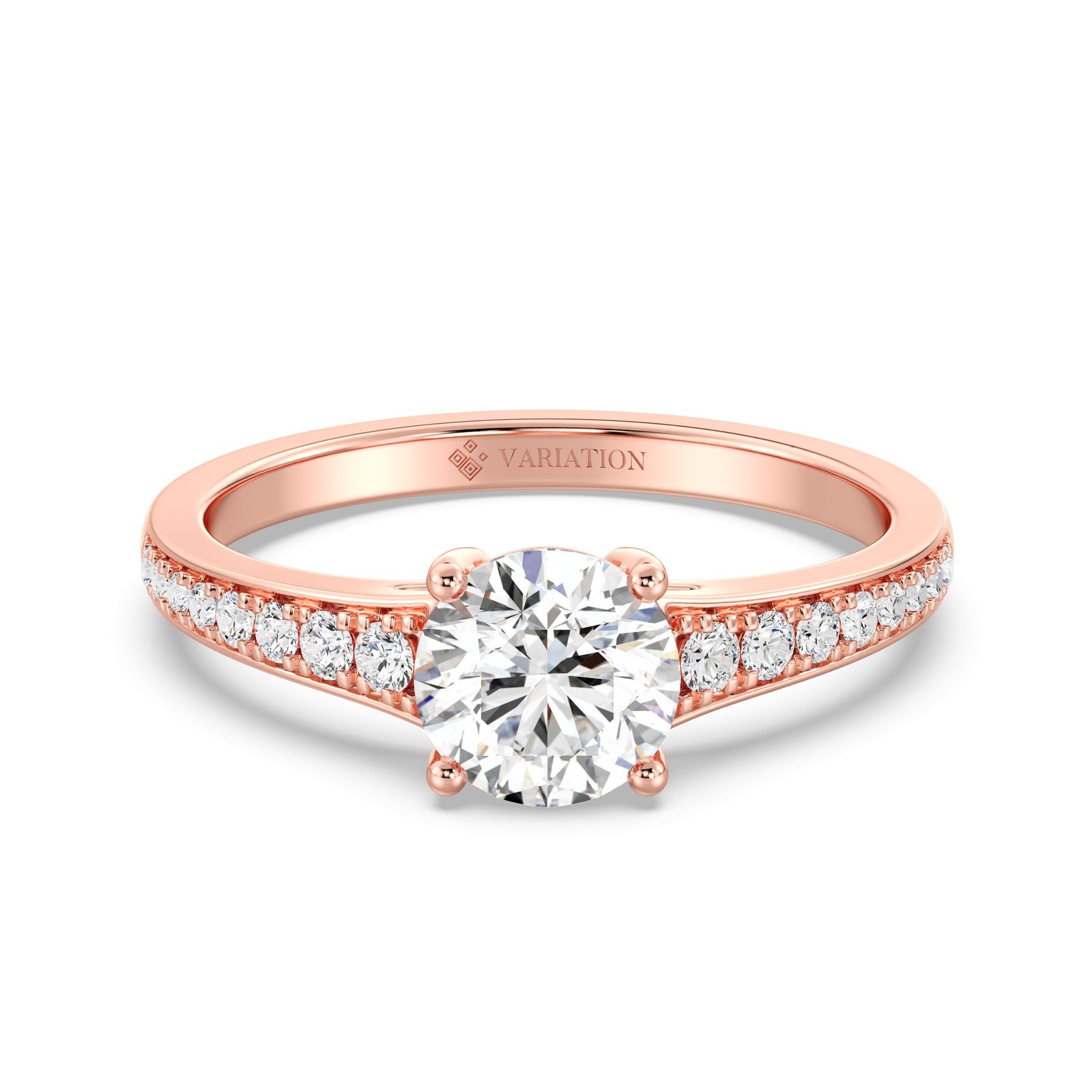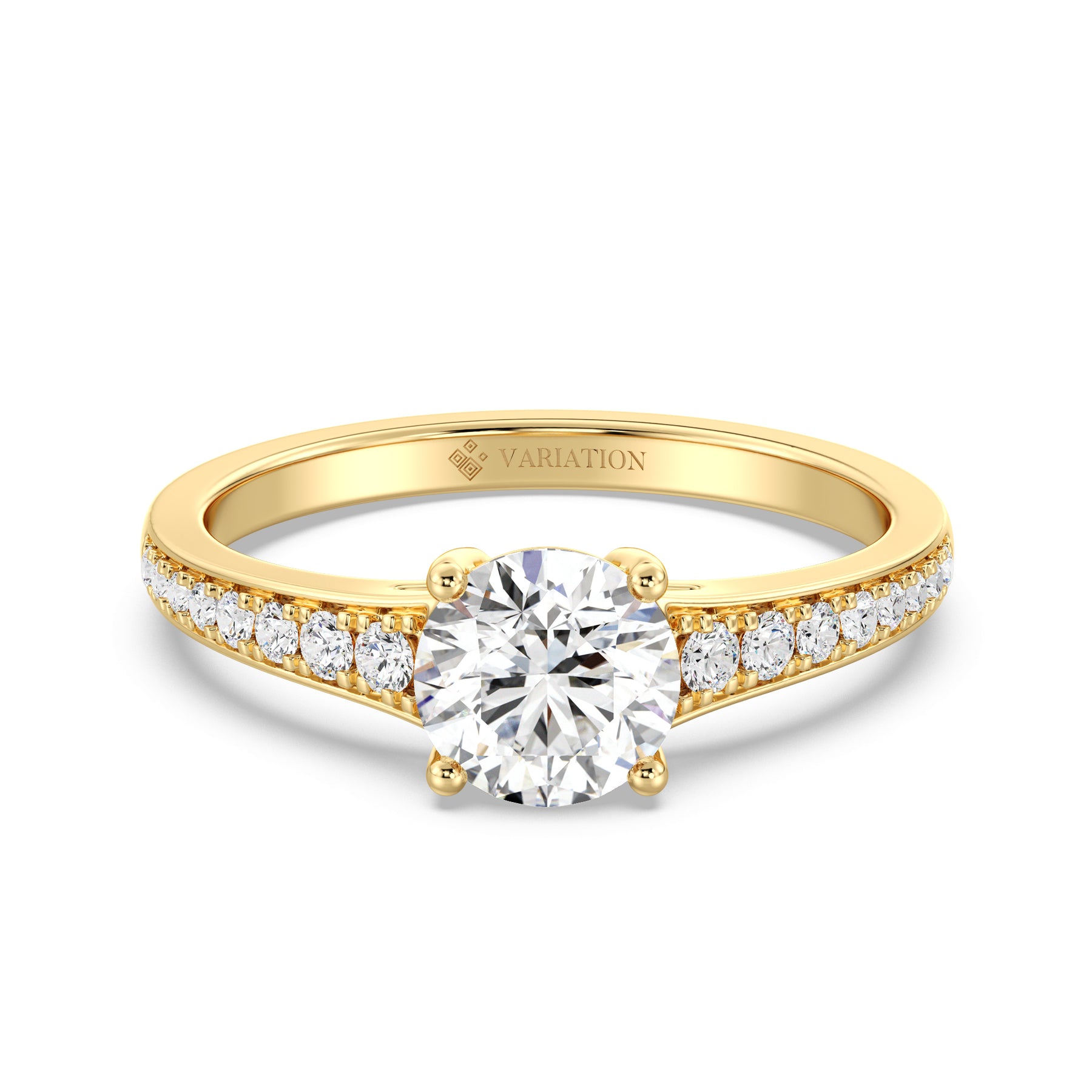 Make a statement with this 1.00ct Round-Cut Lab-Grown Diamond Ring, featuring a refined band that gracefully tapers from wide to narrow for an elegant, balanced silhouette. The IGI-certified center diamond radiates exceptional brilliance, perfectly complemented by 16 SGL-certified prong-set accent diamonds (0.21ct) that graduate in size along the shank — larger near the center and smaller toward the edge for a seamless flow of sparkle. Expertly crafted in 18K yellow, white, or rose gold, this ring embodies timeless beauty and contemporary craftsmanship, making it an exquisite choice for engagements or special occasions.