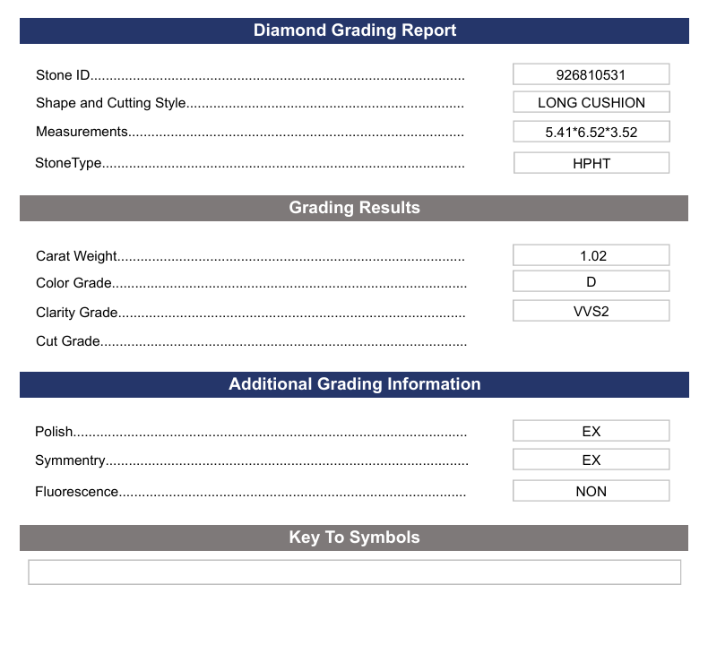 1,02 CT D Колір VVS2 Довга подушка з подушкою Лабораторія Діамант - Варіація сертифікована