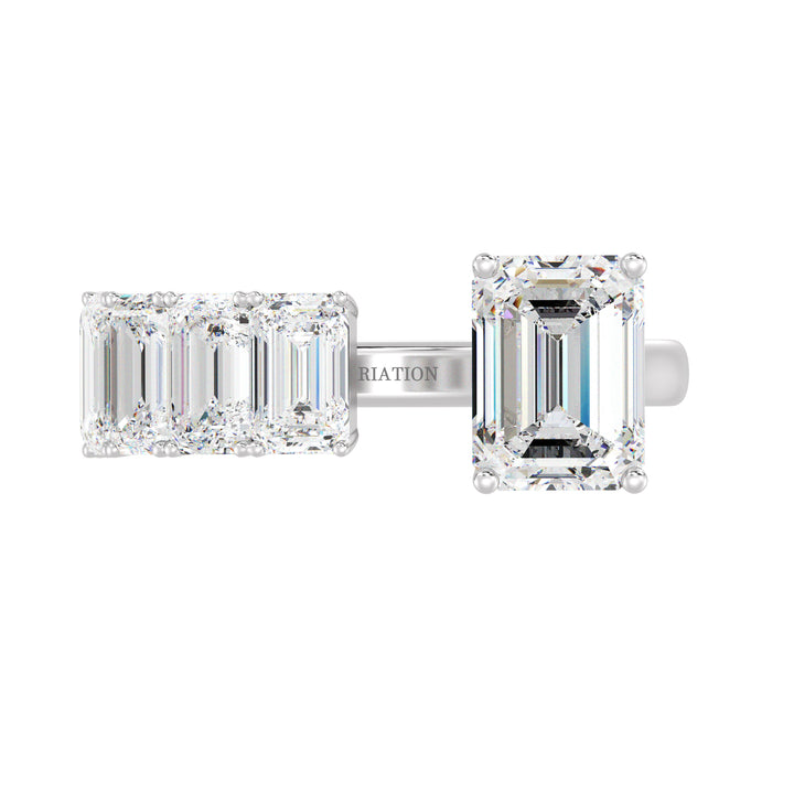В його серці приголомшливий 2,00-каратний смарагдовий лабораторний діамант займає центральну сцену, закріплений у класичній обстановці, що посилює його блиск. Доповнення головного каменю, п’ять додаткових плаваючих смарагдових лабораторних алмазів (0,50 каратів кожен) створюють ефірний, повітряний ефект, який випромінює чисту елегантність. Це кільце, виготовлене в суцільному золоті 18 тис. Незалежно від того, чи вдягнений один або складений з іншими кільцями, цей універсальний і позачасовий твір ідеально підходить для тих, хто цінує прекрасну майстерність та стійку розкіш - а також може бути налаштований у будь -якій діамантовому формі або вазі карату для справді особистого дотику.
